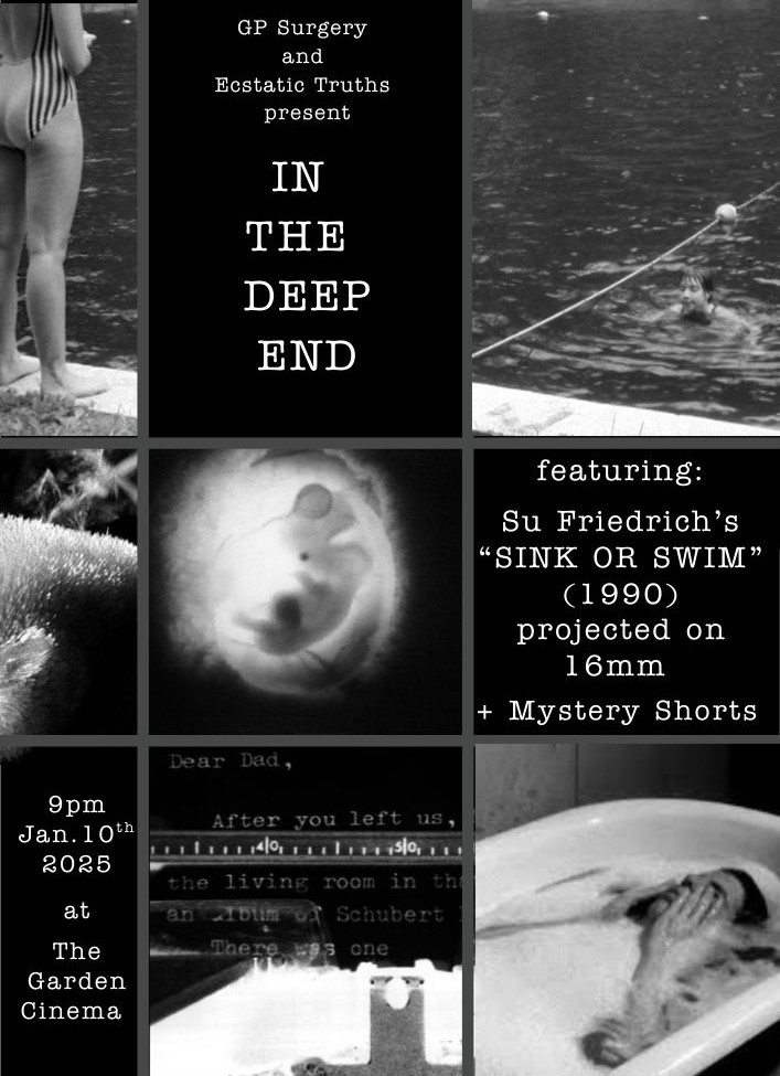 Join GP Surgery and Ecstatic Truths in The Atrium Bar for a special event titled ‘In the Deep End’, a night of exploring water, memory, and the power of healing through reflection. Our main film, which will be projected on 16mm film,… Read More